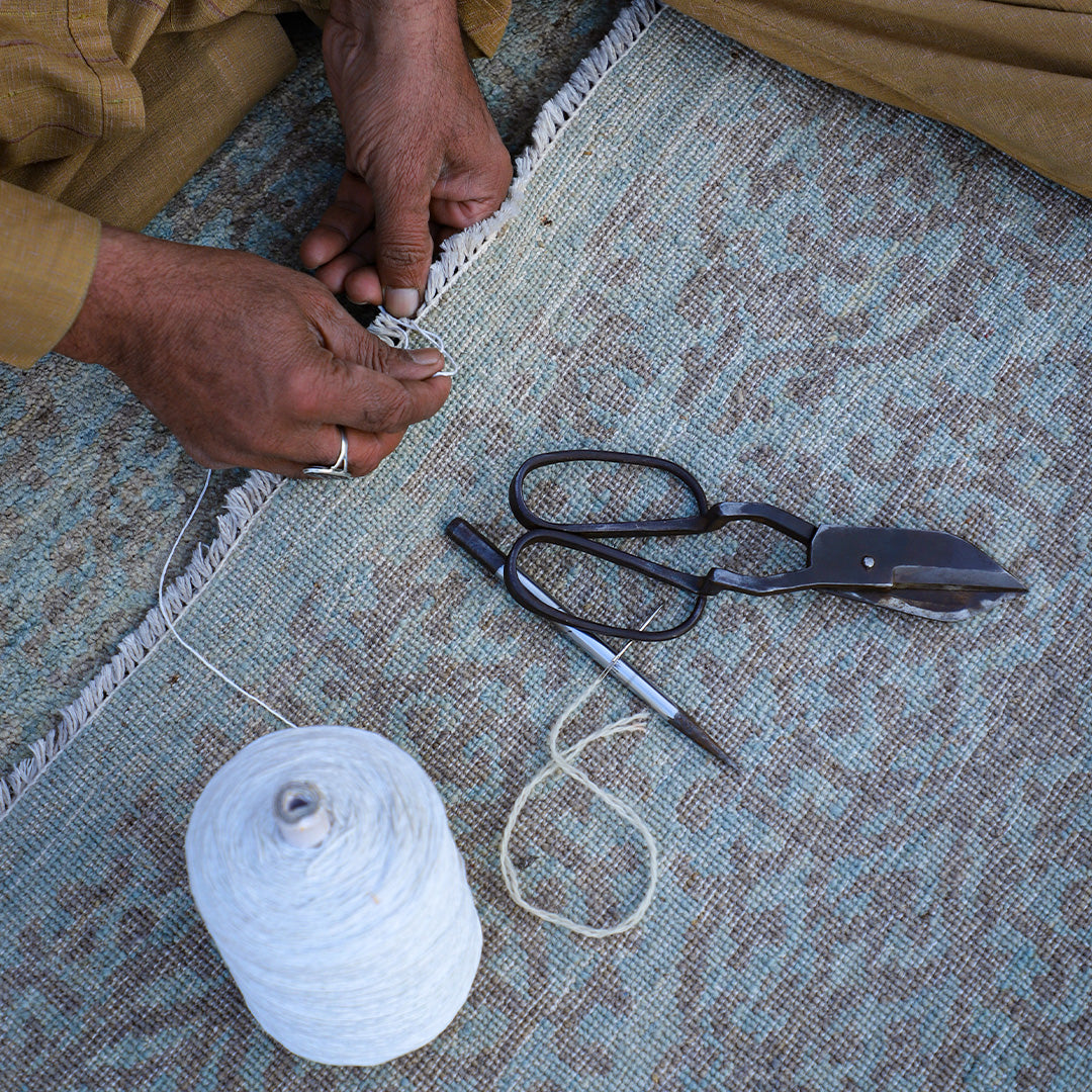 We shear the rugs down to our client's requirements after they've soaked up the fantastic sunlight. Depending on the client's wants, the fringes are either reduced in length, tucked under the rug, or removed entirel
