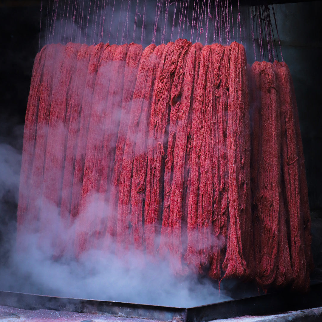 After spinning the wool, artisans skillfully prepare it with either vegetable or chromium dyes. They mainly use vegetable dyes to get a natural texture, while chromium dyes help achieve a more uniform and delicate look
