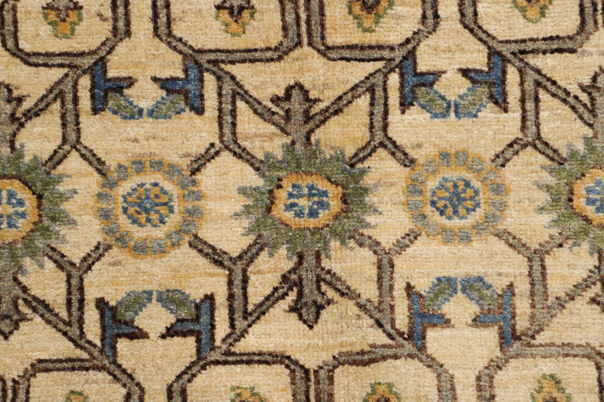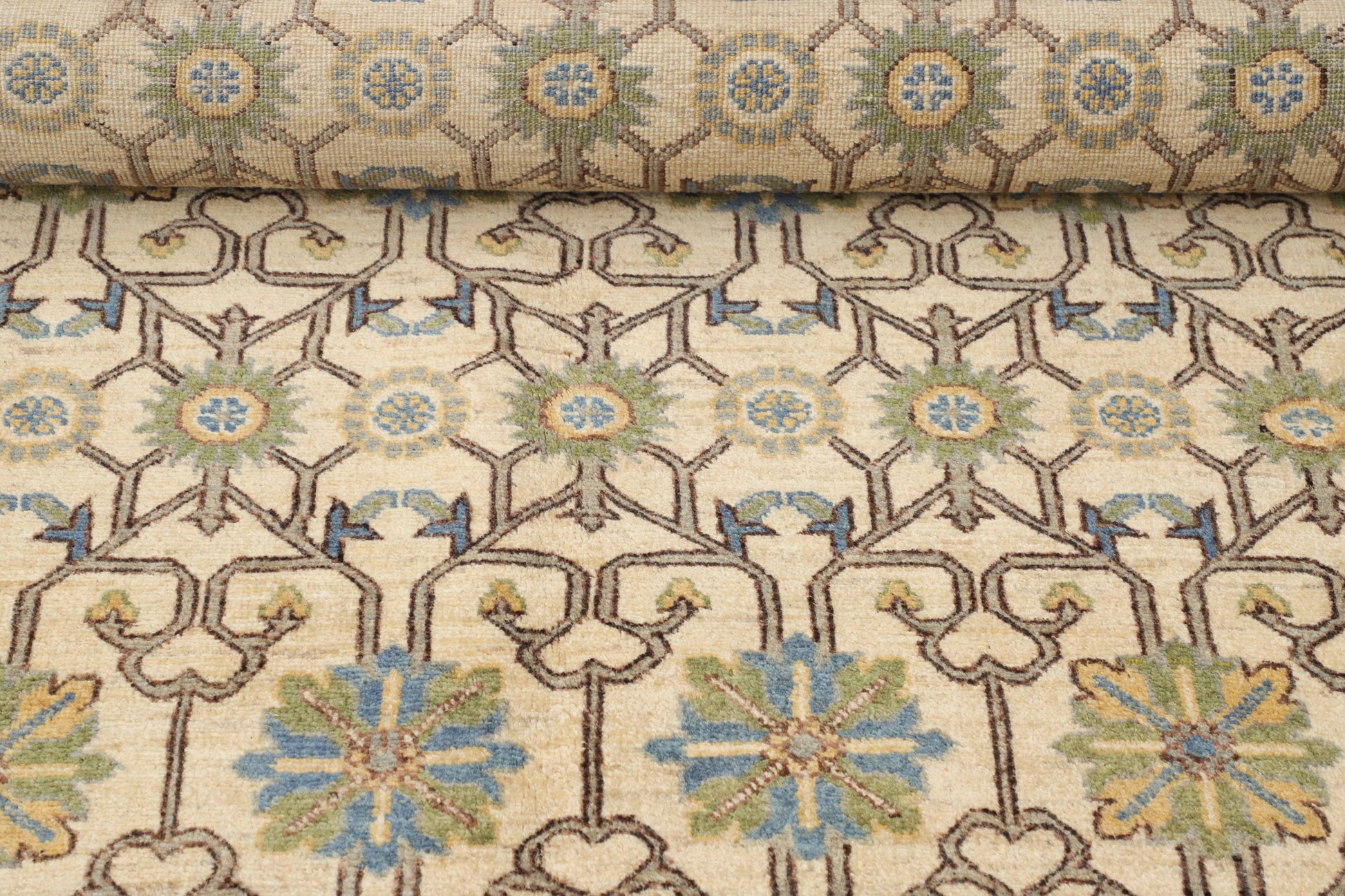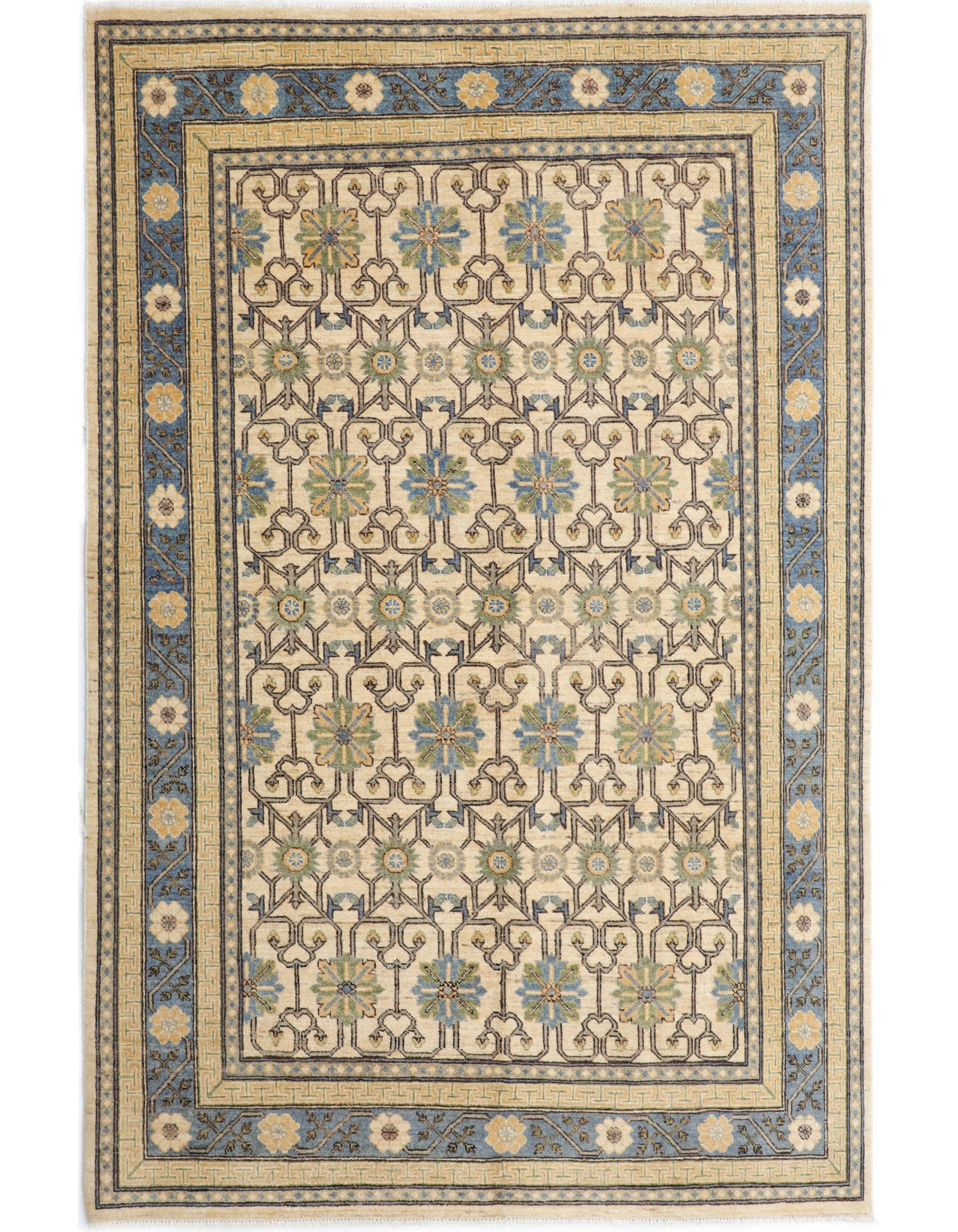The essence of Khotan, inspired by heritage, designed for today—this geometric wool rug in ivory and blue brings effortless elegance to any space.