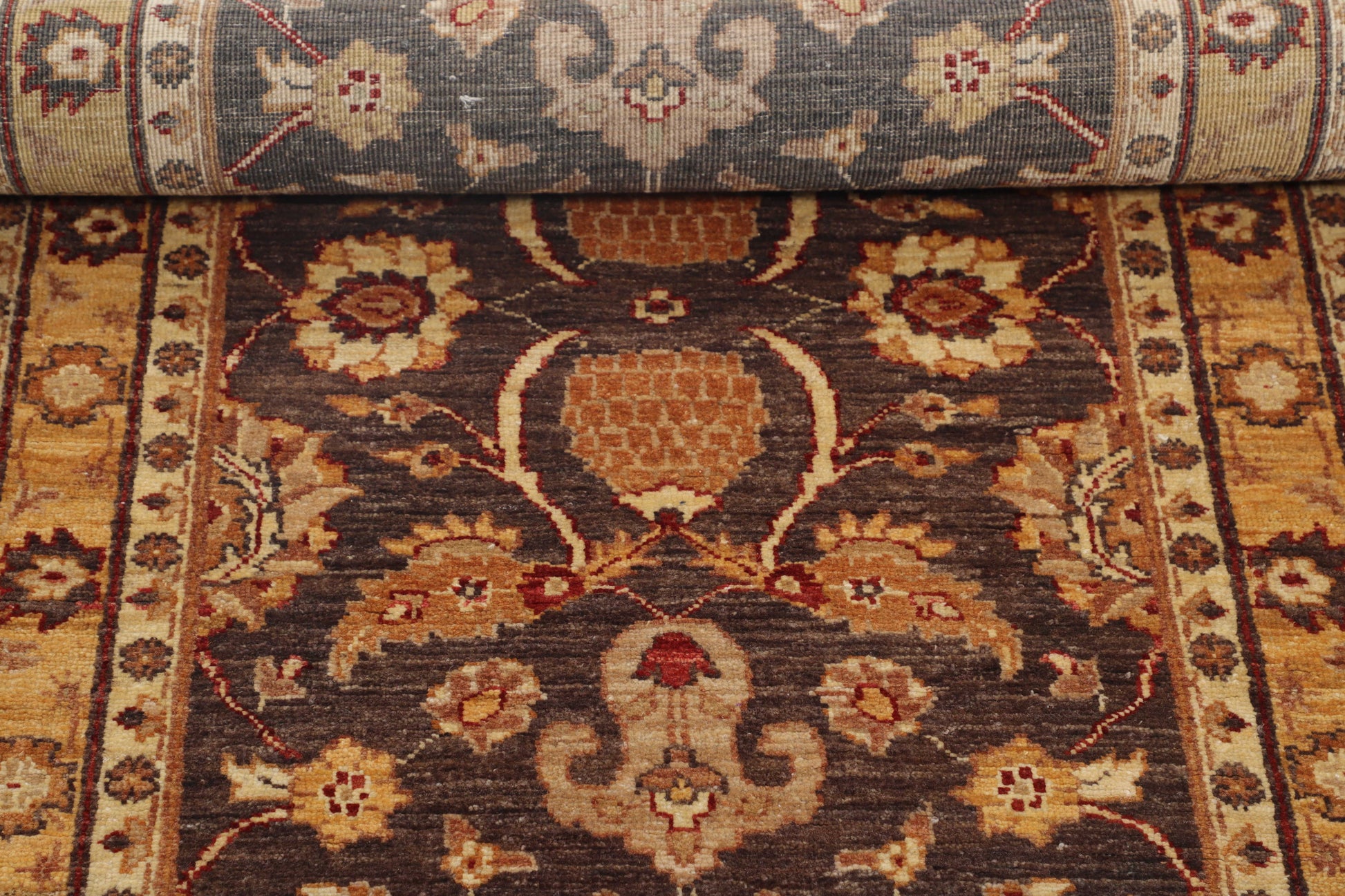 With each thread whispering elegance and organic grace, this brown rug with a ivory-toned border and delicate texture unfolds like an inside mystery.