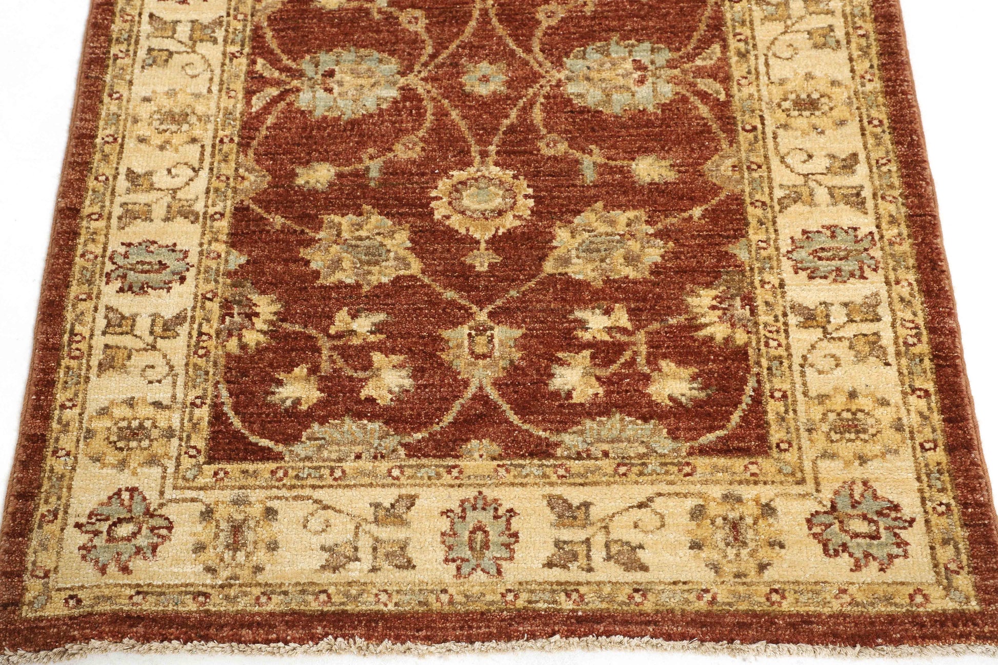 This rug's reddish-orange base, ivory border, and fine texture, which resemble the blending of flame and clay, add a lively, dynamic, and organic beauty to any space.