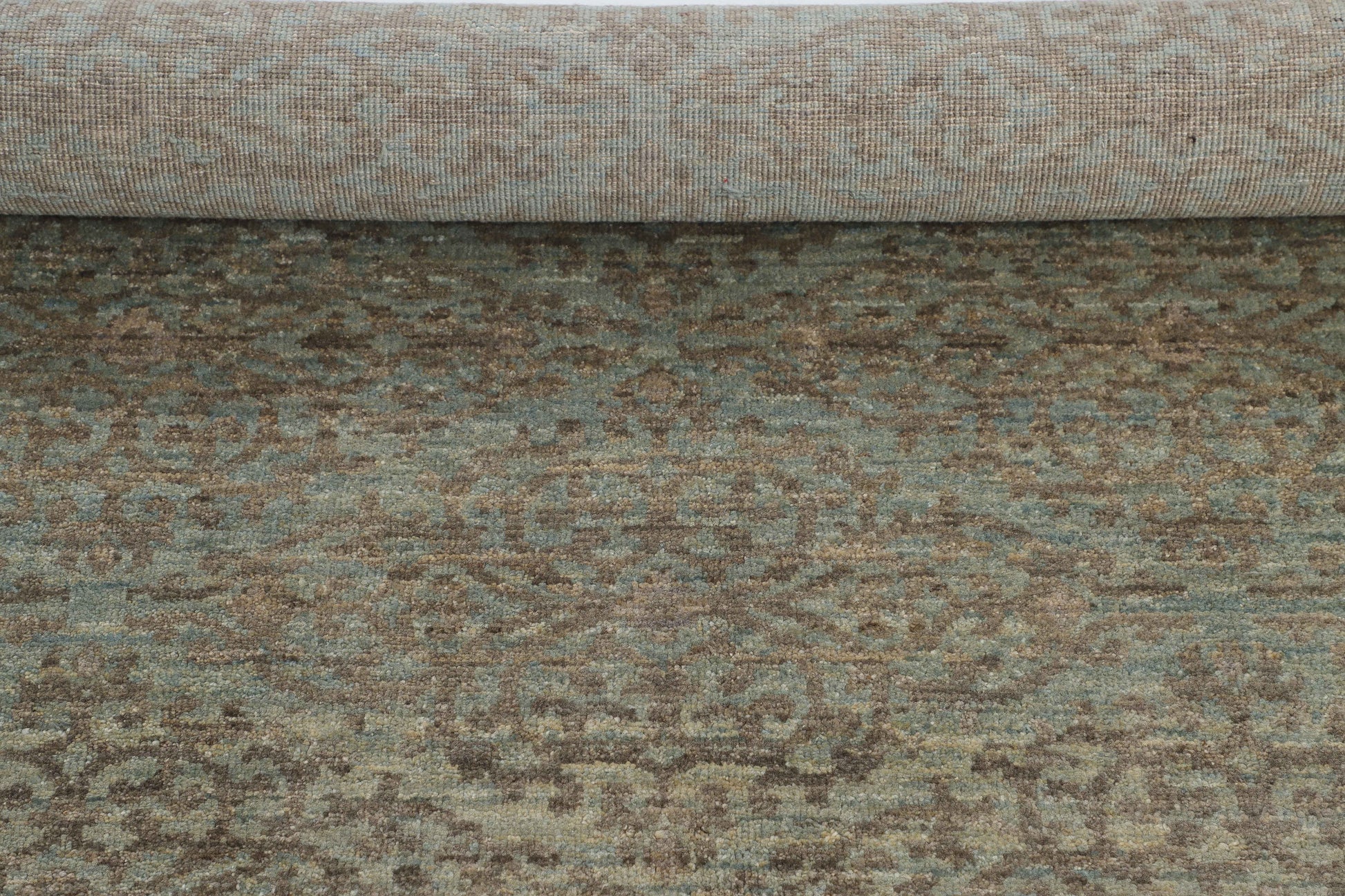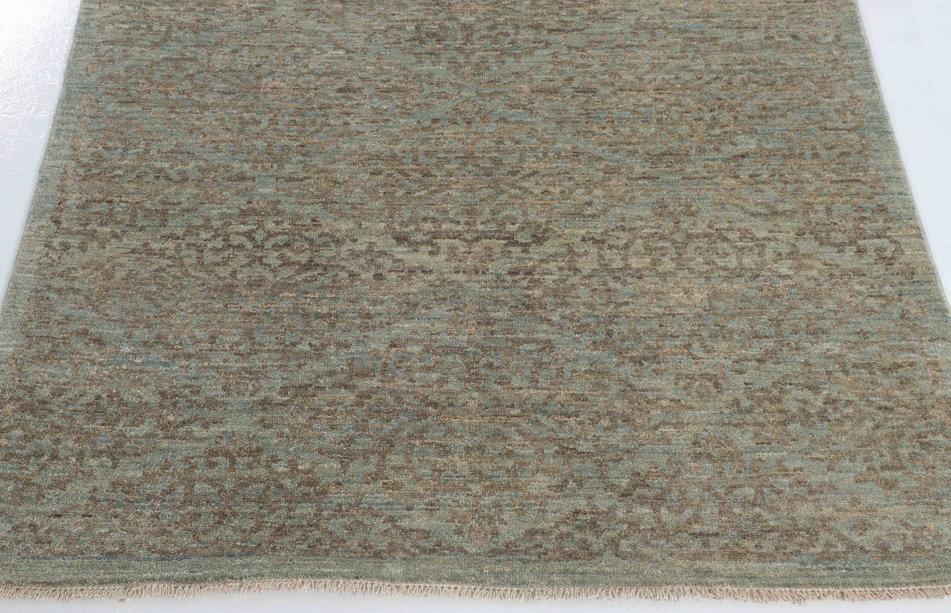 This rug, in cool slate gray with a warm brown texture, feels like a peaceful escape, blending subtle tones for a chic and inviting atmosphere.