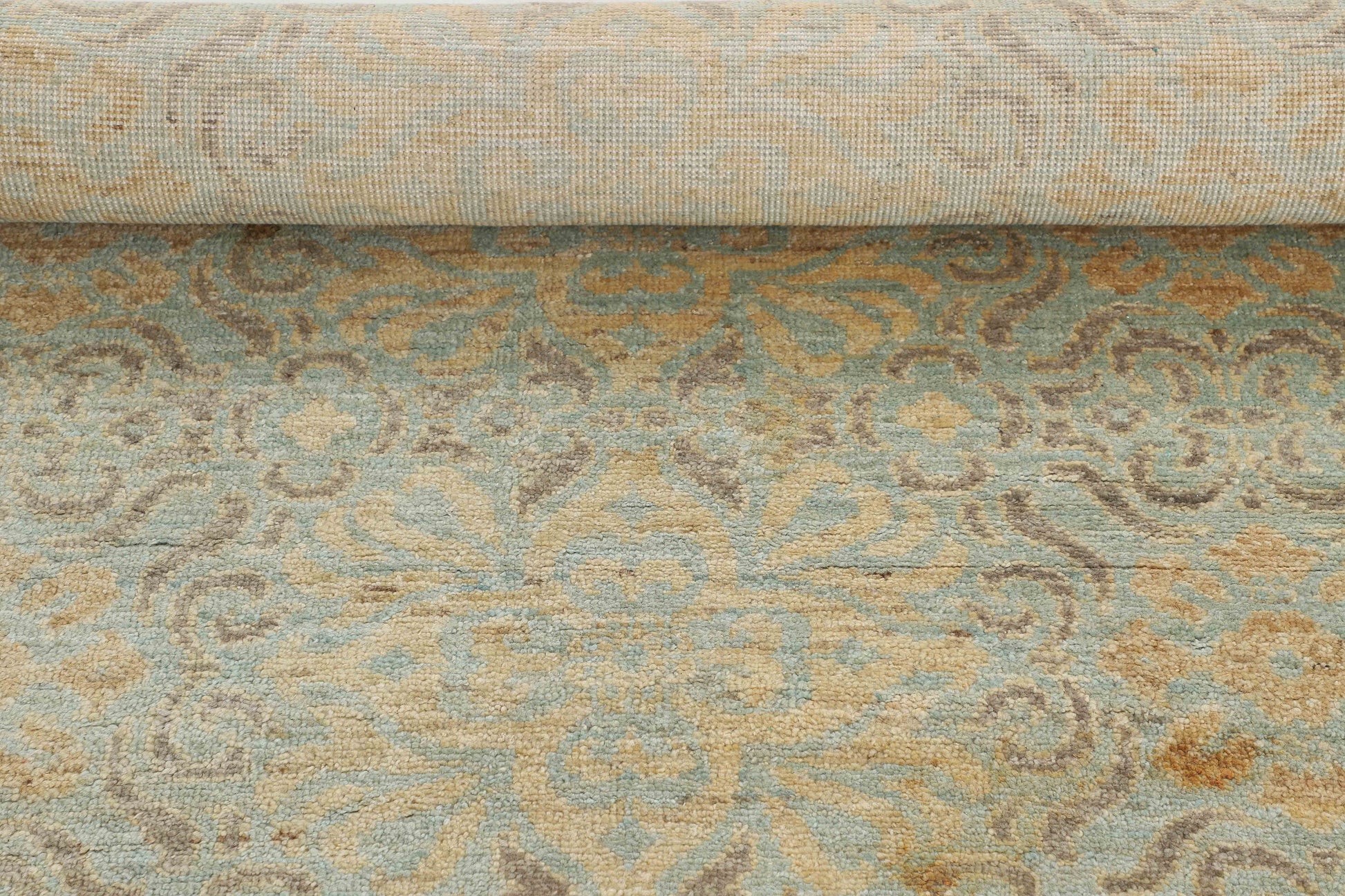 This handmade rug, featuring a brown x orange-toned base with a minimal touch of blue, offers a classic yet contemporary design that effortlessly brings warmth and calm to your home.