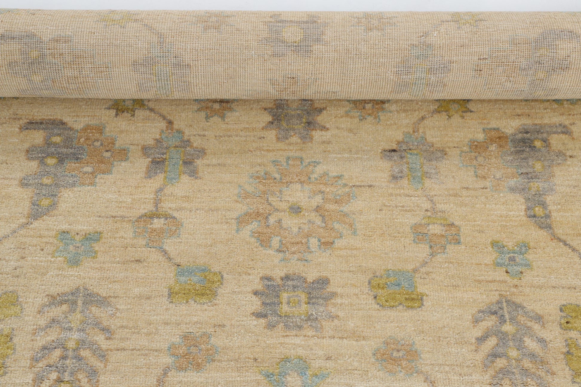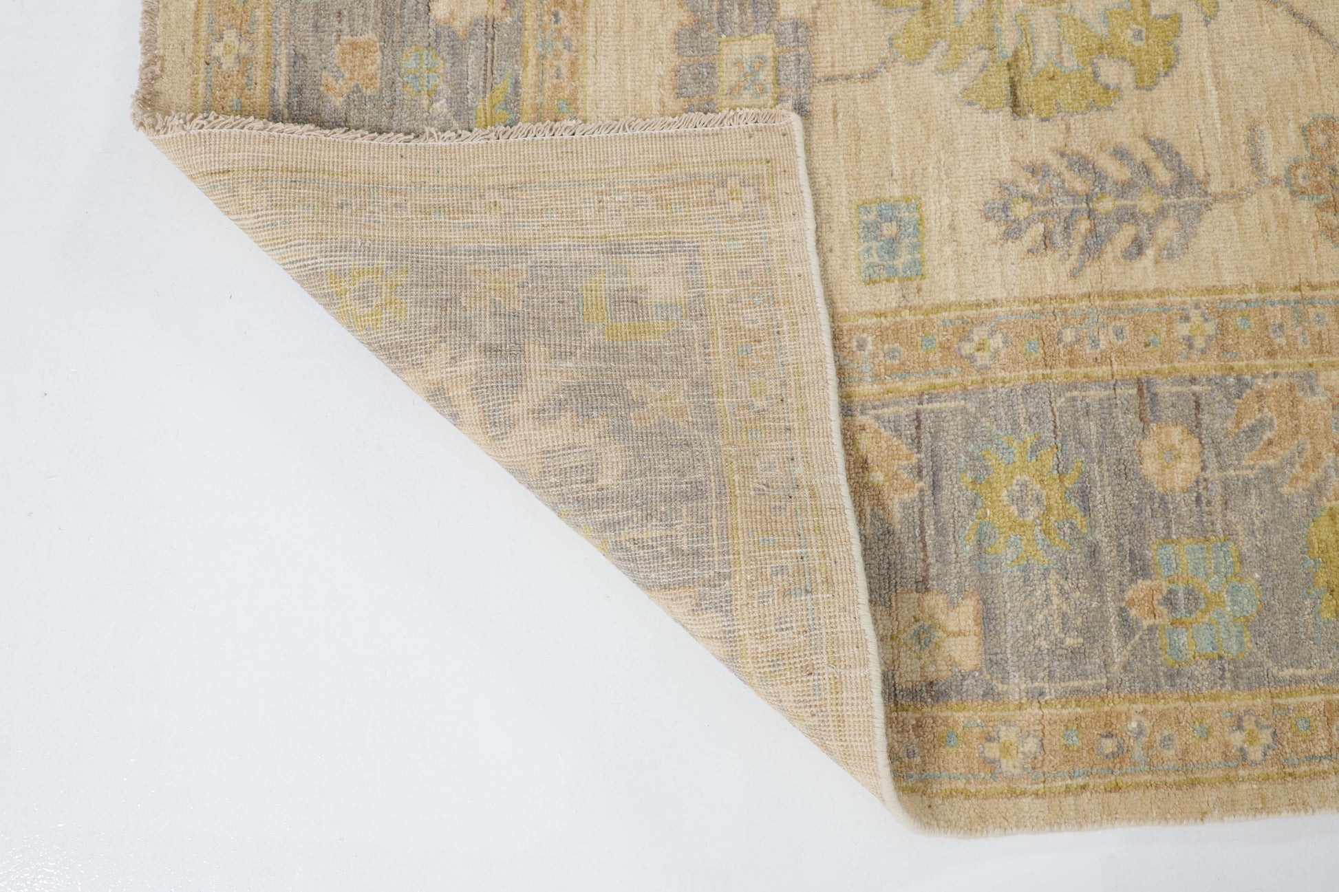 With a gentle beige base, ivory border, and delicate texture, this handmade rug creates a calm, peaceful atmosphere that adds subtle elegance to your space.