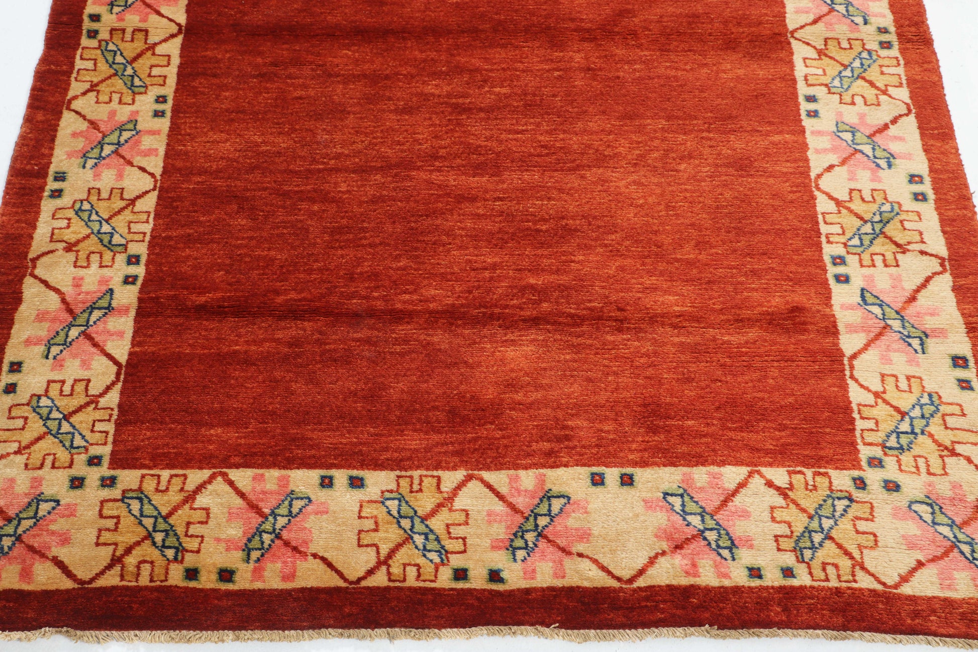 This rug is an unique, hand-knotted piece of art with a lively design that draws inspiration from traditional skill. It gives your living room a cozy and polished look.