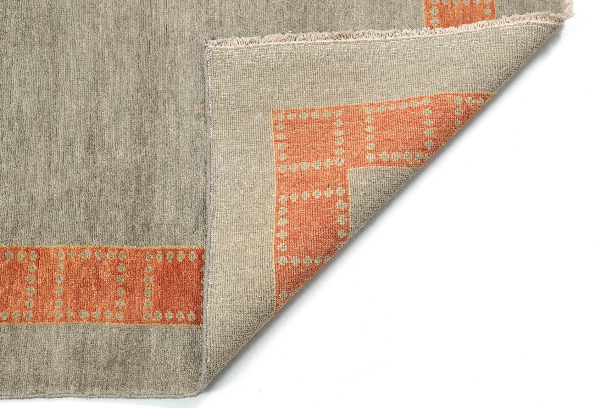 With its sleek grey design and bold orange border–This rug brings a splash of color and softly boosts your home decor.