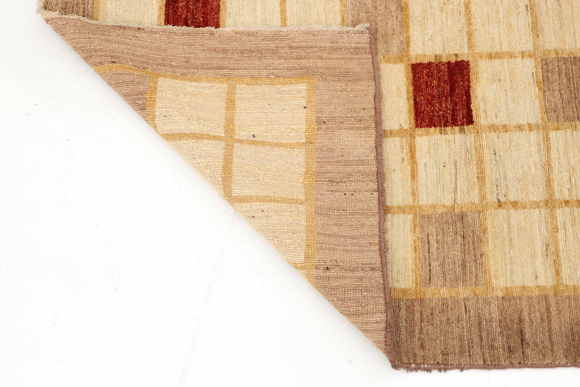 This multicolored handmade rug is an outstanding way to add a comfortable touch and brighten up any space with its cheerful colors and horizontal design