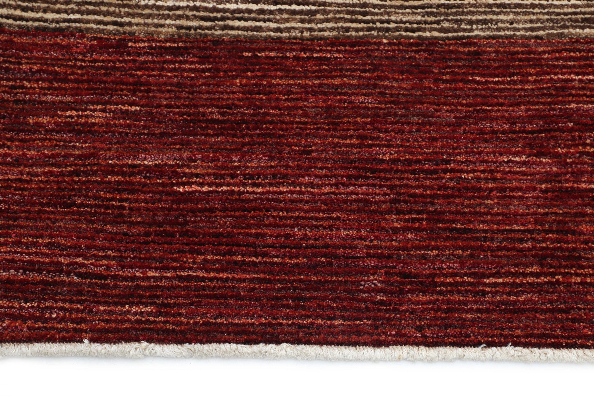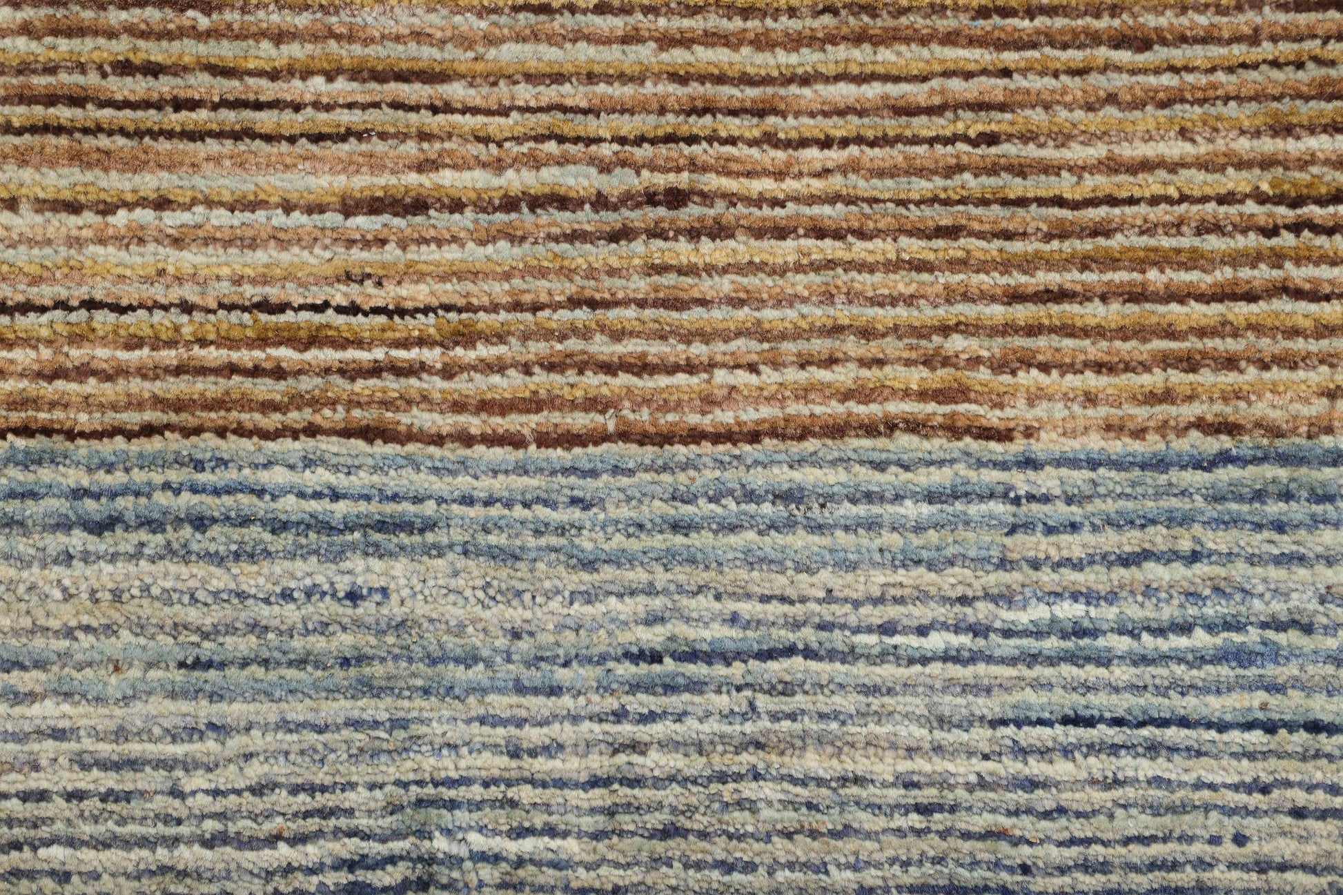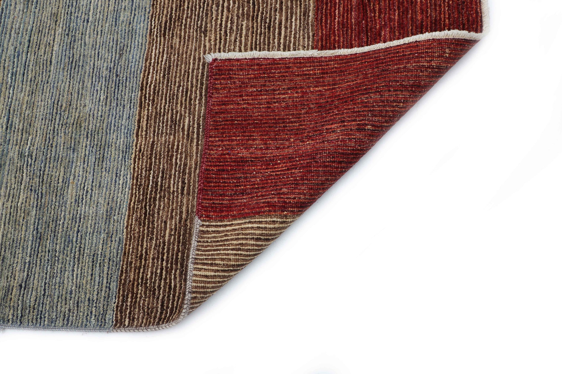 This multicolored handmade rug is an outstanding way to add a comfortable touch and brighten up any space with its cheerful colors and horizontal design.