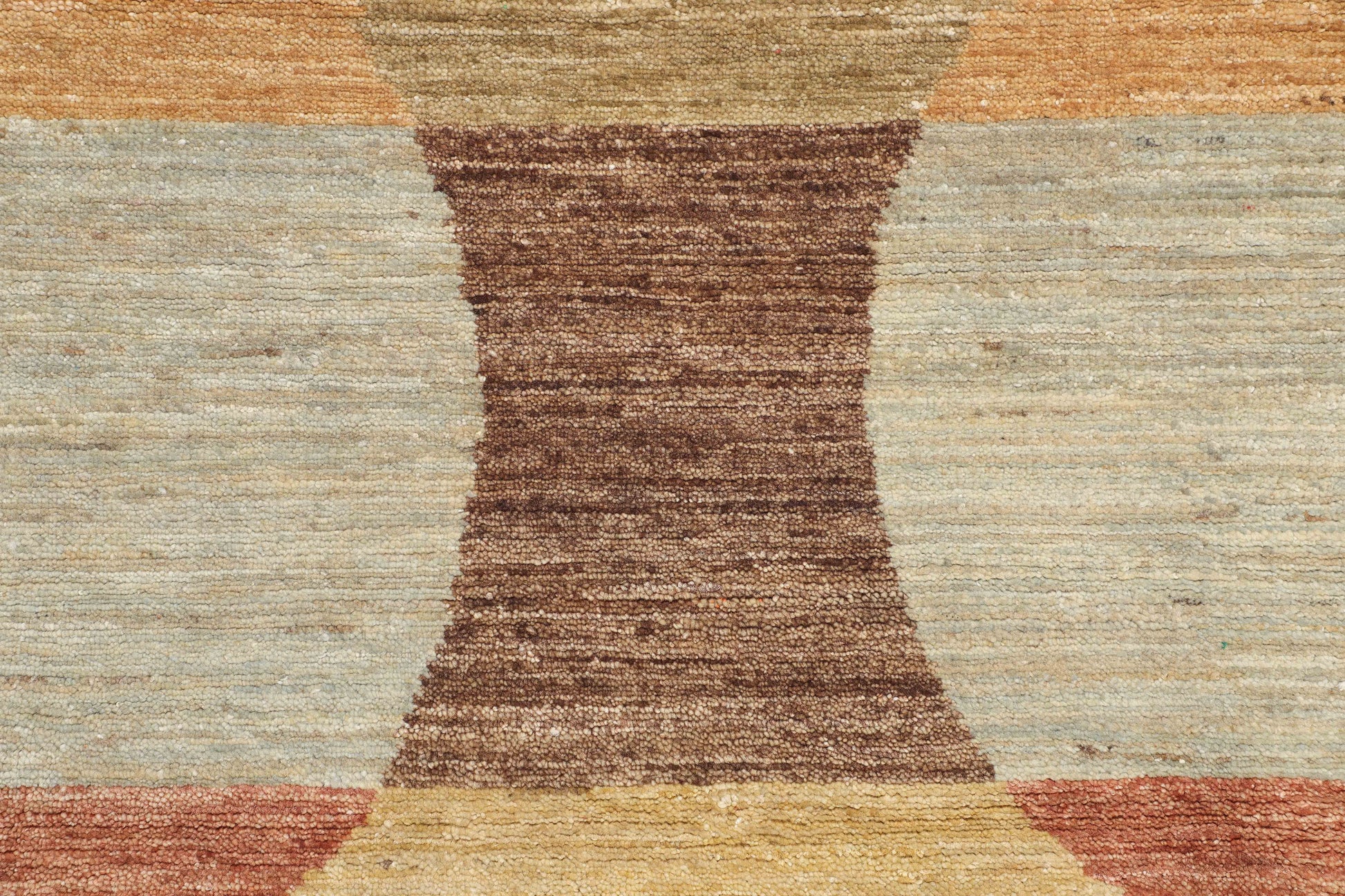 This handmade rug showcases a striking fusion of rust and black, brought to life with a bold geometric round pattern—timeless artistry woven for your space.