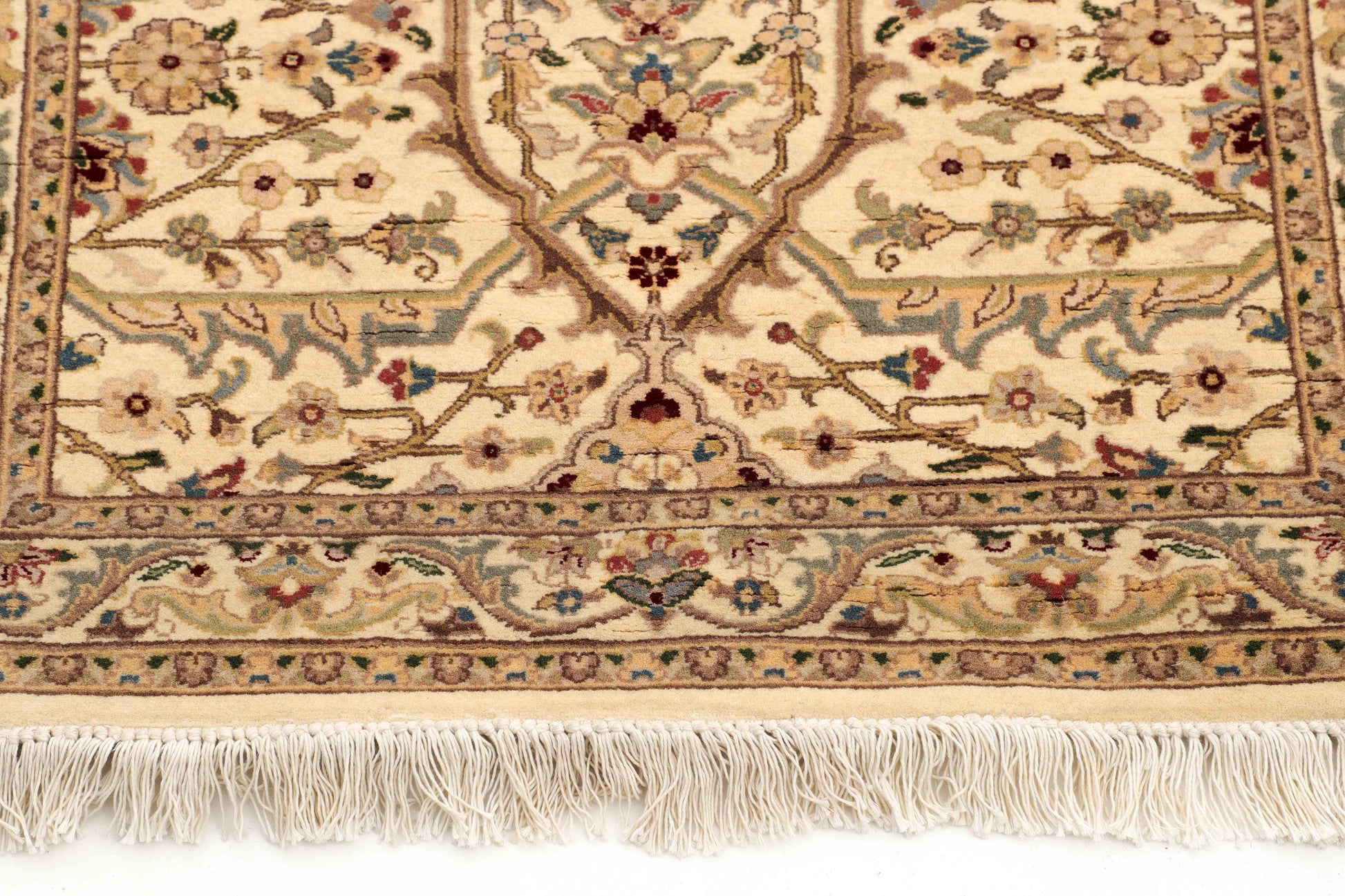 You'll elevate your space with this traditional handmade rug, featuring ivory tones, delicate textures, and a hint of red for refined elegance.