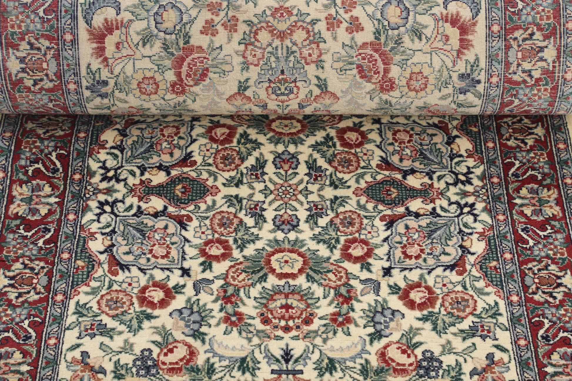 Transform your space with the elegance of this traditional rug, where ivory tones meet a crimson red border and delicate multi-color detailing for a timeless appeal.