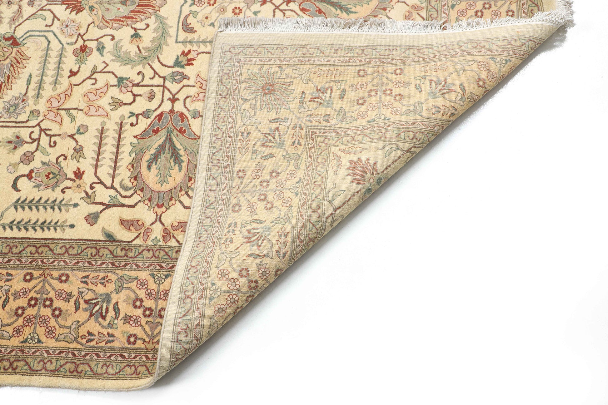 Enhance your home’s style with this traditional rug, showcasing an ivory base with intricate brown patterns and soft olive green hints—bringing a touch of nature’s elegance to your space.
