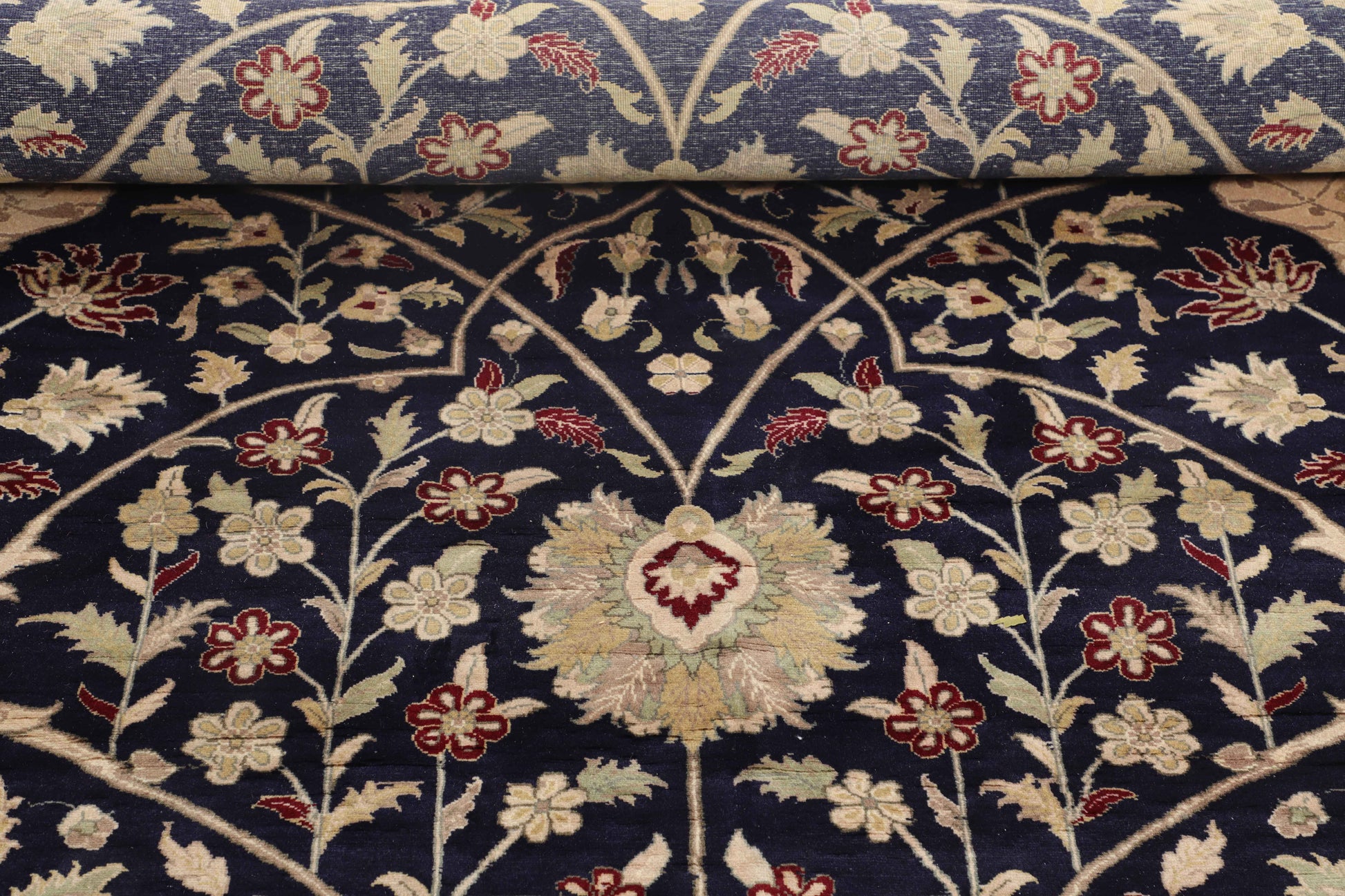 Your home will look luxurious and stunning with this rich-blue traditional rug, like a midnight sky framed with elegance, featuring fine textures and an ivory and red double border.