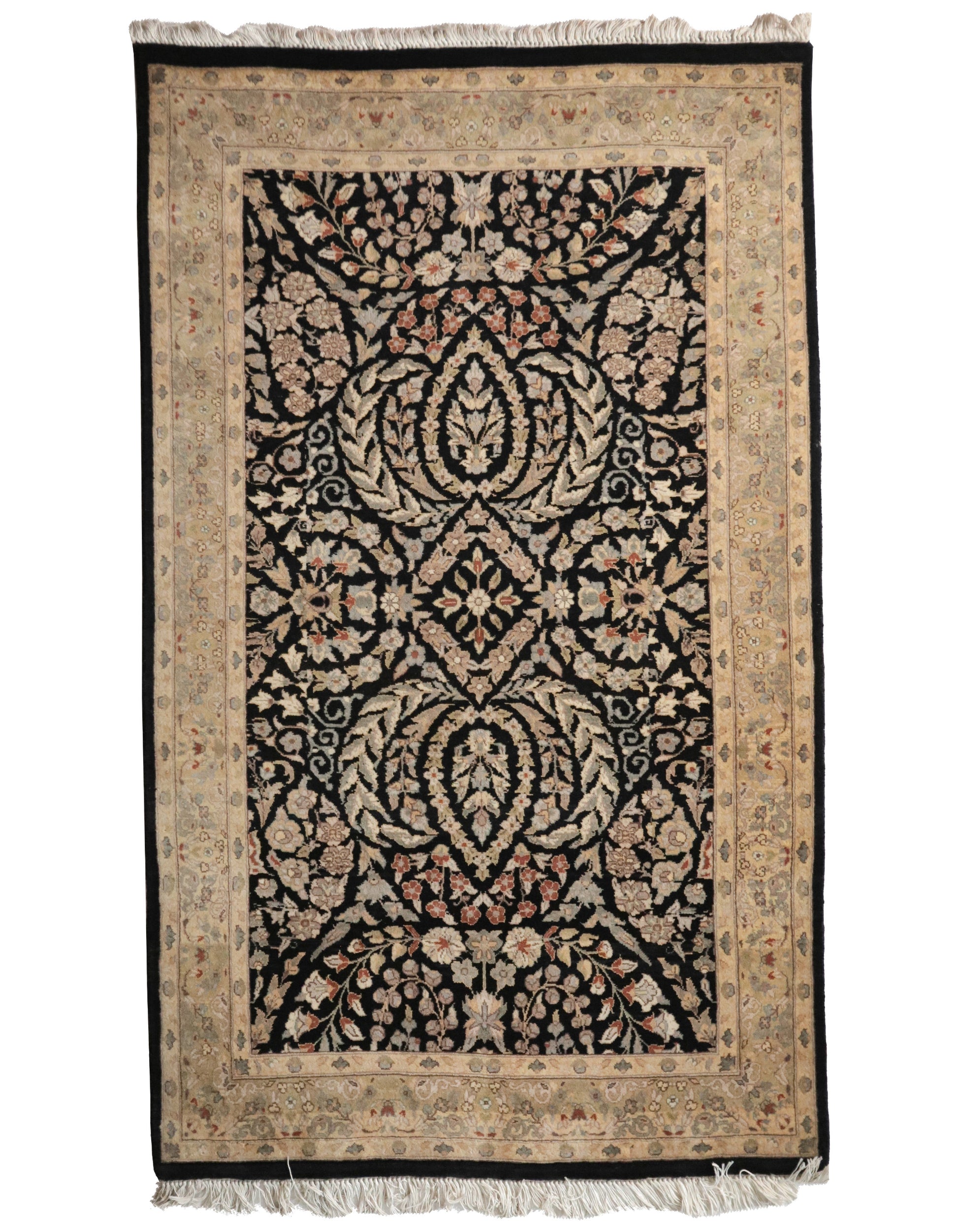 Your home will look luxurious and stunning with this deep-black traditional rug featuring fine textures and an ivory border.